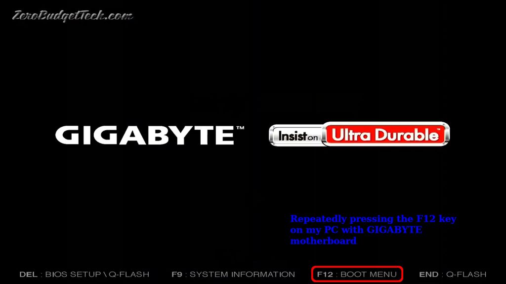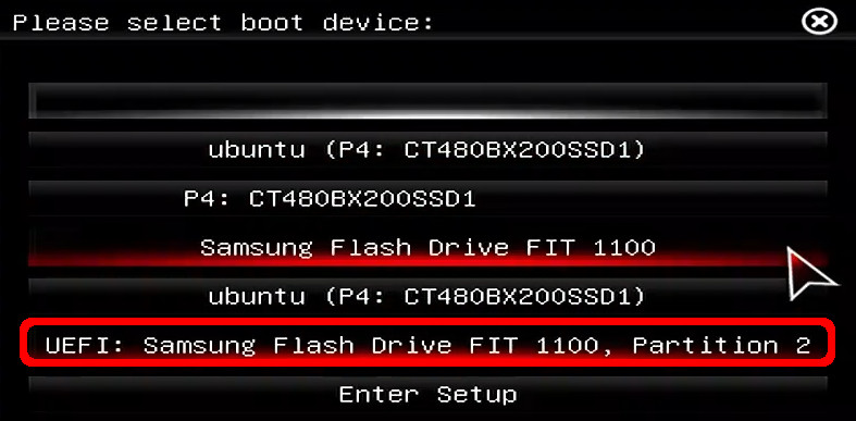 7. To boot your Ventoy USB drive, start the computer with the Ventoy USB inserted. Use your computer vendors hotkey assigned for boot options by repeatedly pressing and releasing until you get the menu desired. You may have to look this up on the vendor website if not listed here or not working as shown.